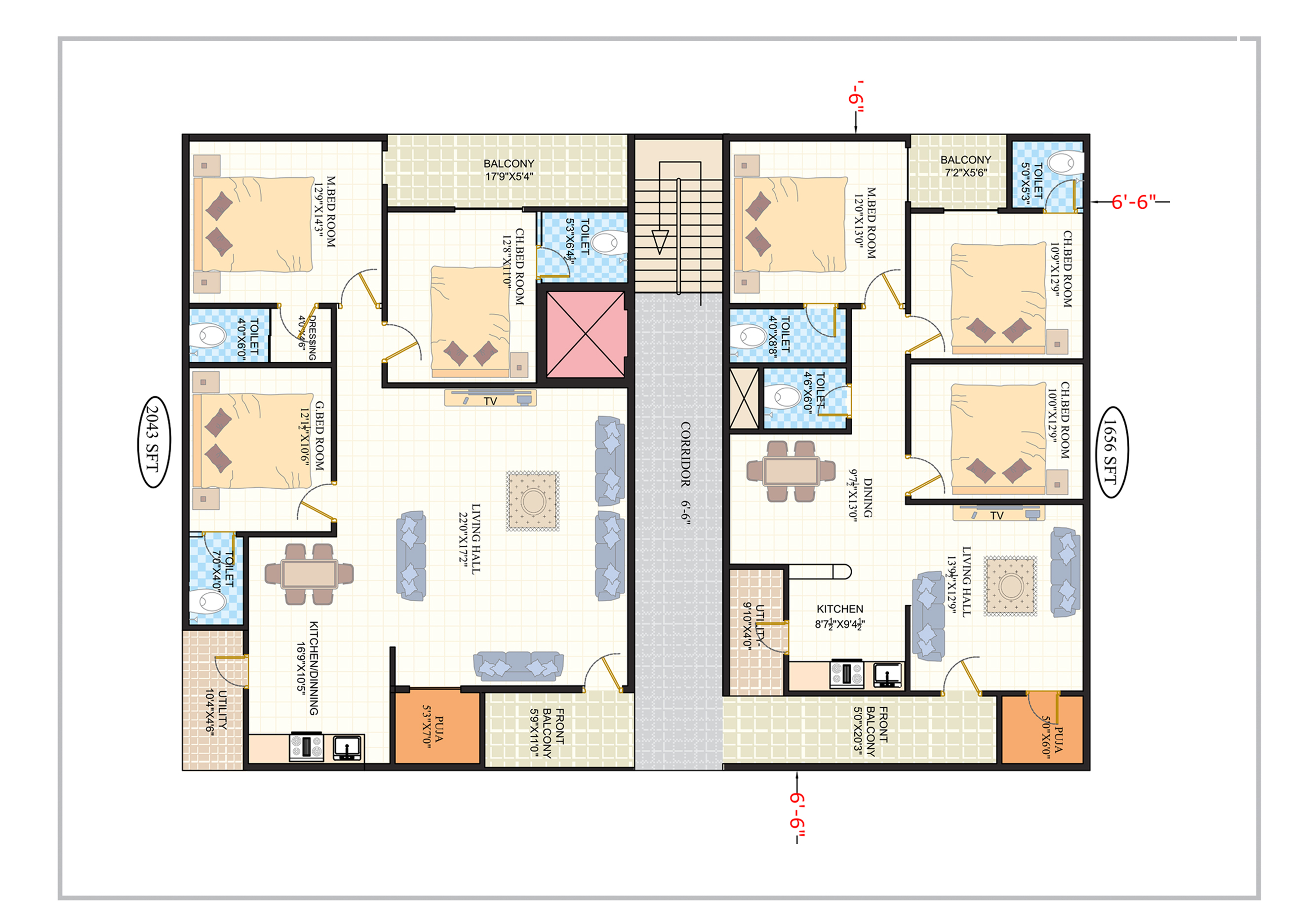 1656 SFT 2043 sft areas